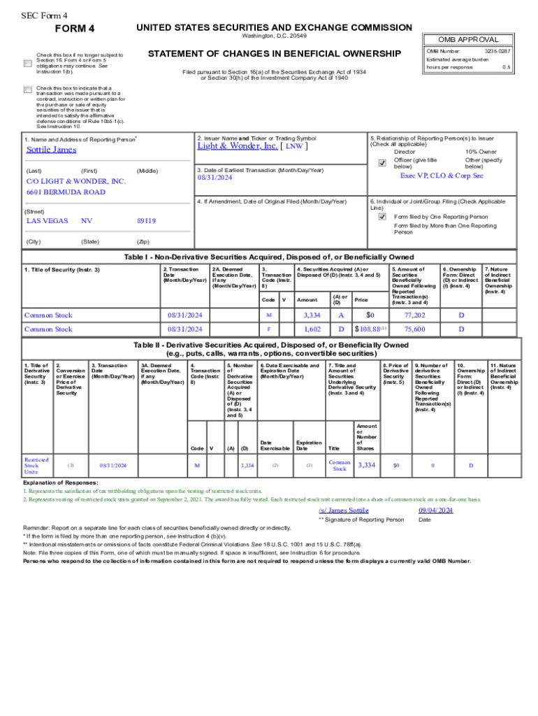 Get the free Form 4 for Sottile James filed 09/04/2024. 4 filed 09/04/2024