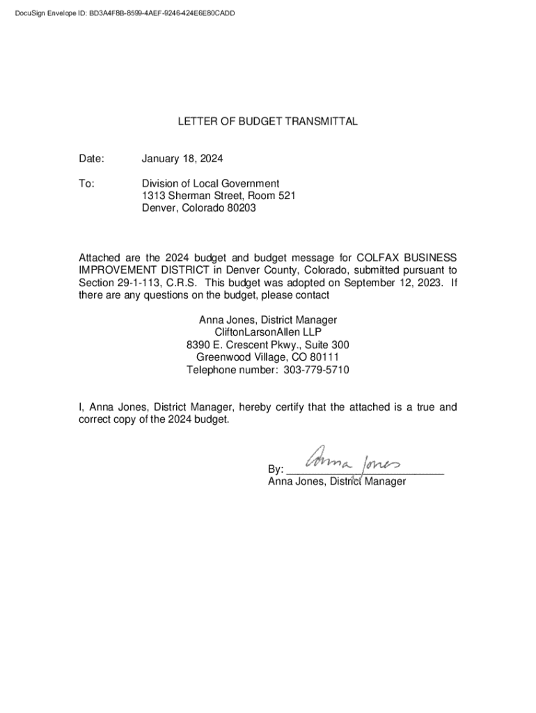 Get the free Attached are the 2024 budget and budget message for COLFAX BUSINESS