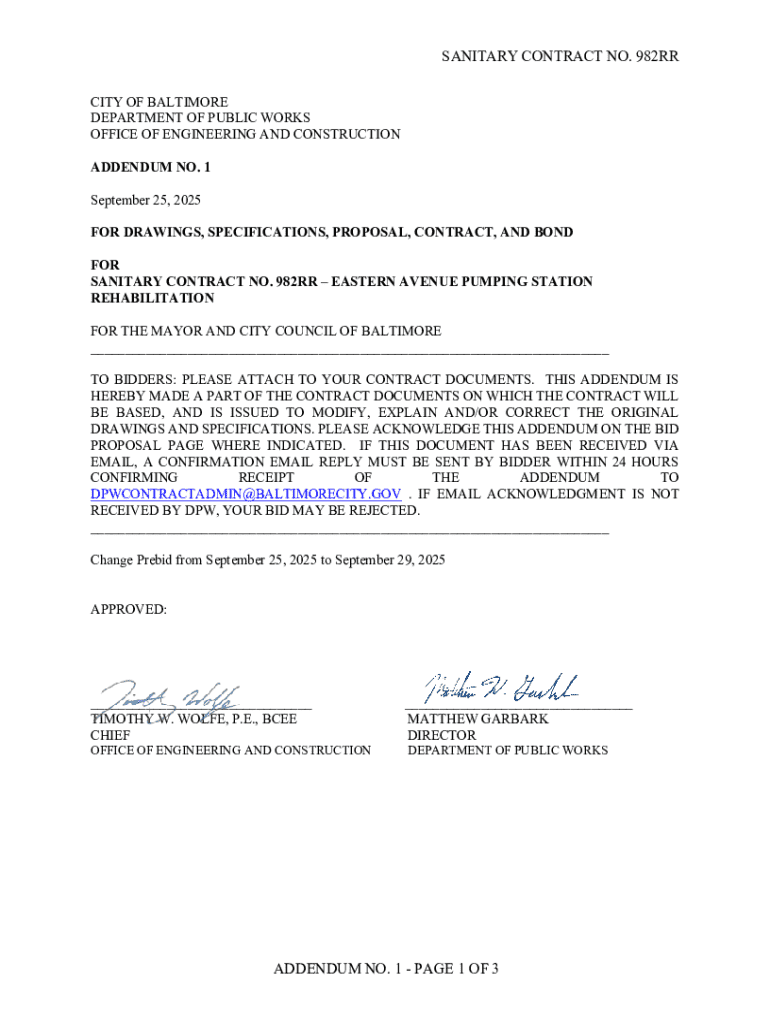 Get the free SANITARY CONTRACT NO. 982RR ADDENDUM NO. 1 - PAGE 1 ...