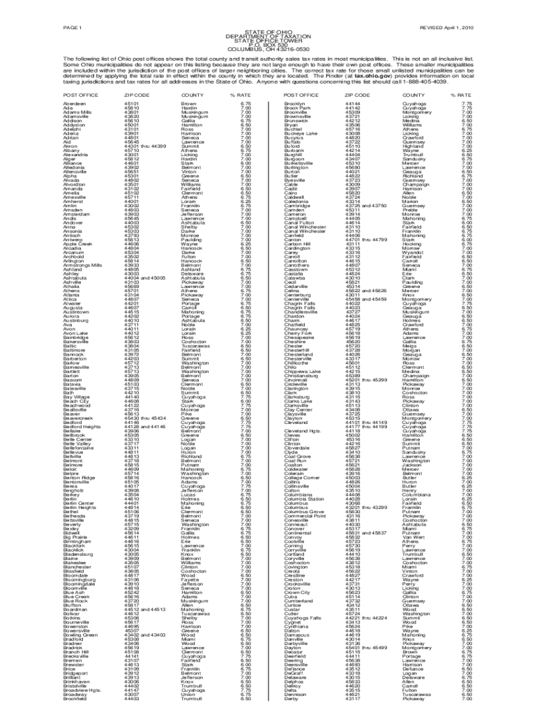 Get the free The following list of Ohio post offices shows the total county ...