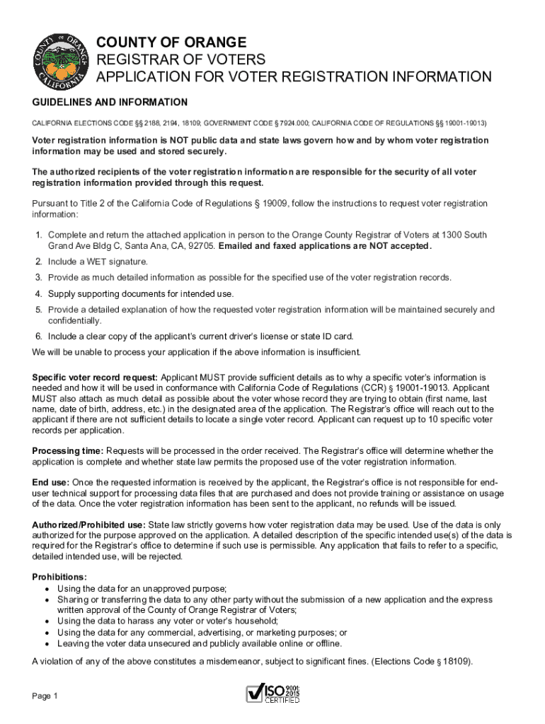 Get the free COUNTY OF ORANGE REGISTRAR OF VOTERS APPLICATION ...