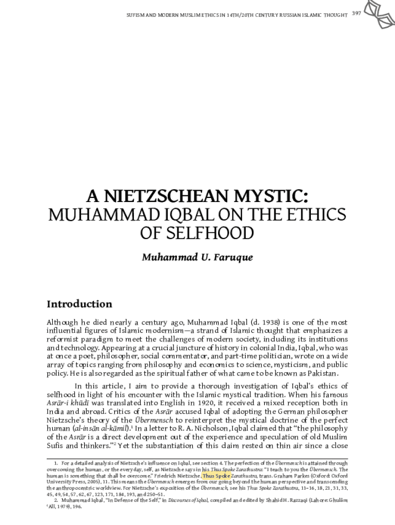 Get the free A NIETZSCHEAN MYSTIC: MUHAMMAD IQBAL ON THE ETHICS ...