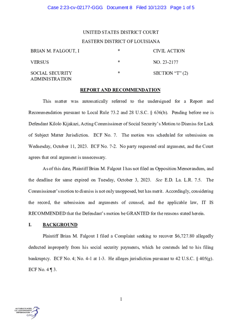 Get the free Falgout v. Social Security Administration (2:23-cv-02177), ...