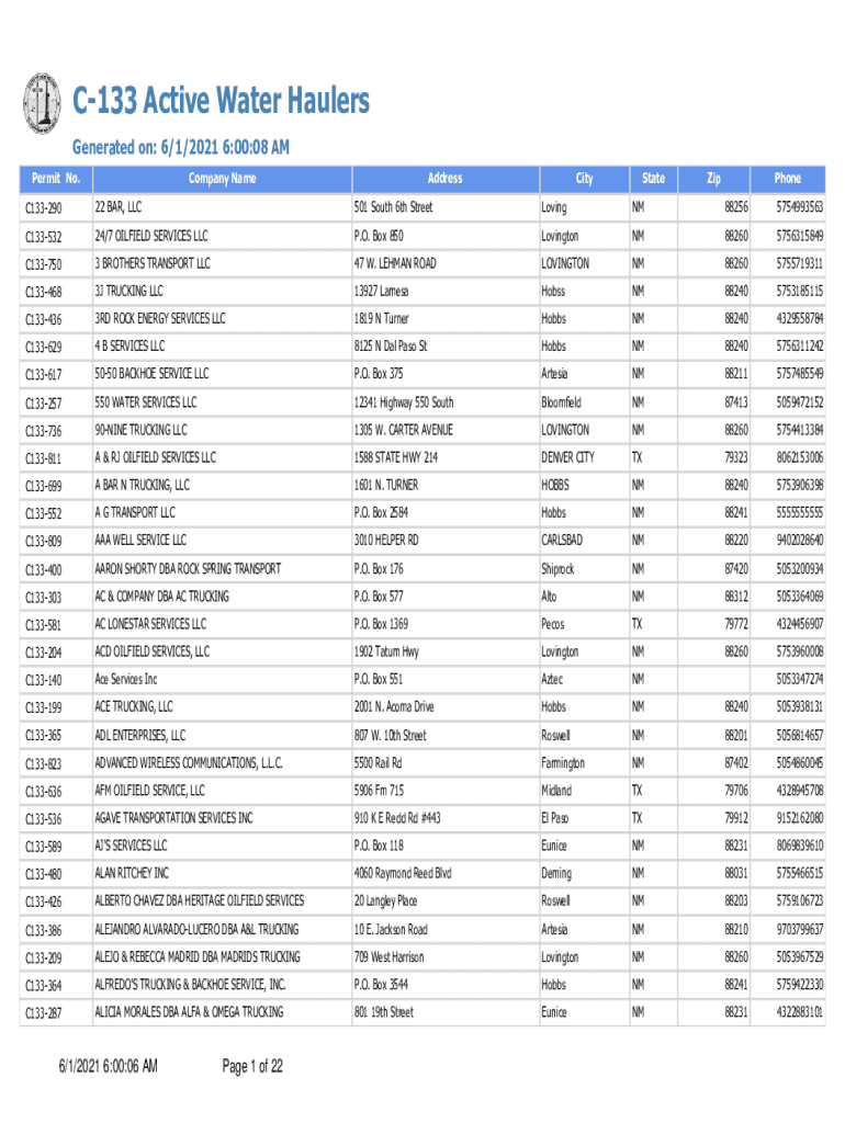 Get the free C-133 Active Water Haulers - EMNRD.nm.gov