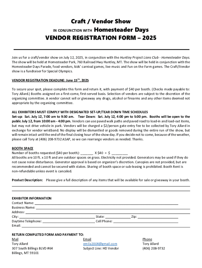 Get the free Vendor Opportunities for July 12th Event in Huntley MT