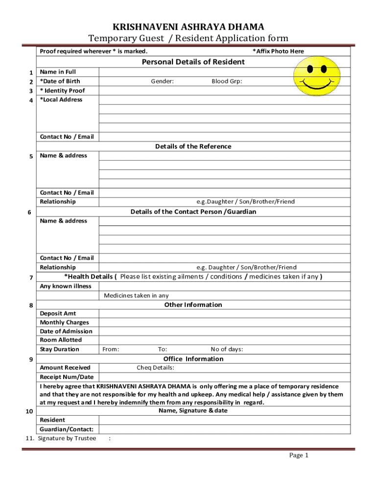 Ashraya Temporary Guest Resident Form - How-to Guide