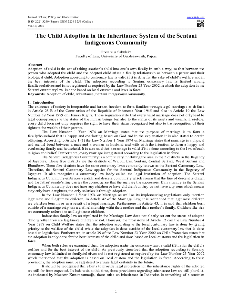 Get the free The Child Adoption in the Inheritance System of the Sentani ...