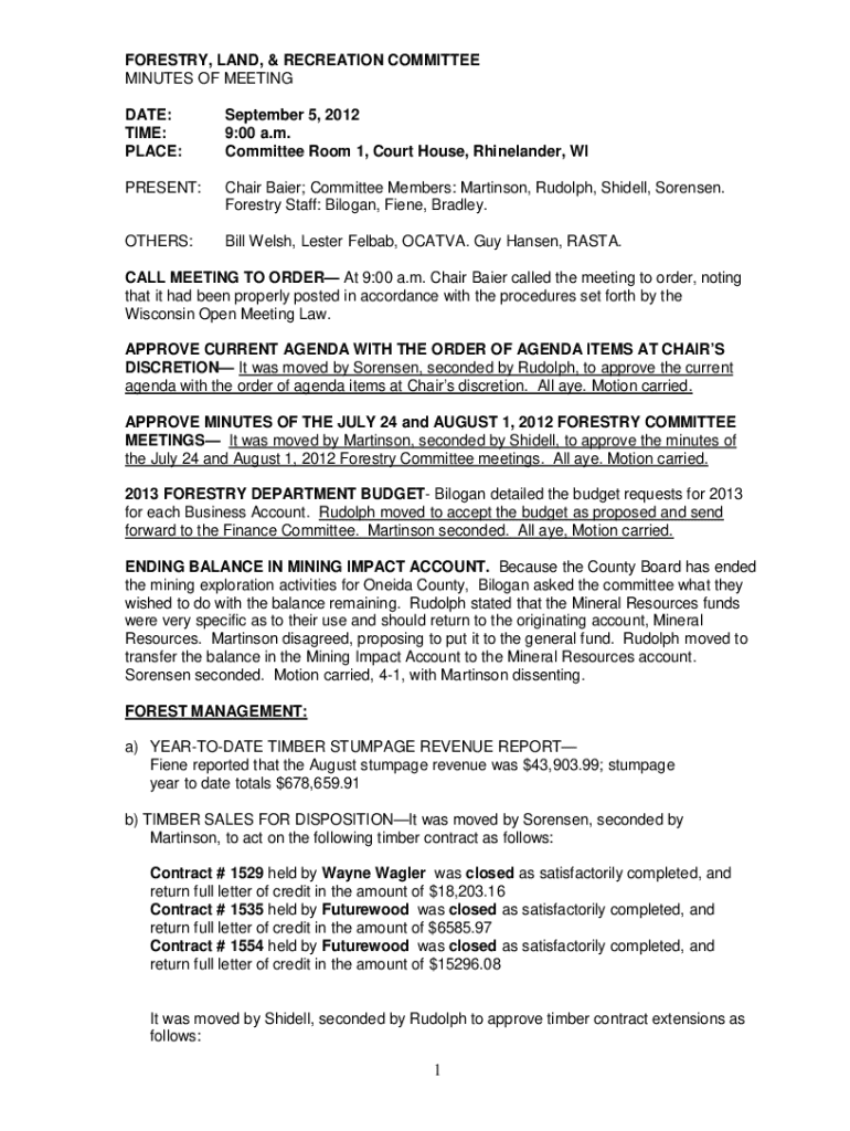 Get the free Committee PRESENT: Chair Forestry Staff: Bilogan, Fiene, ...