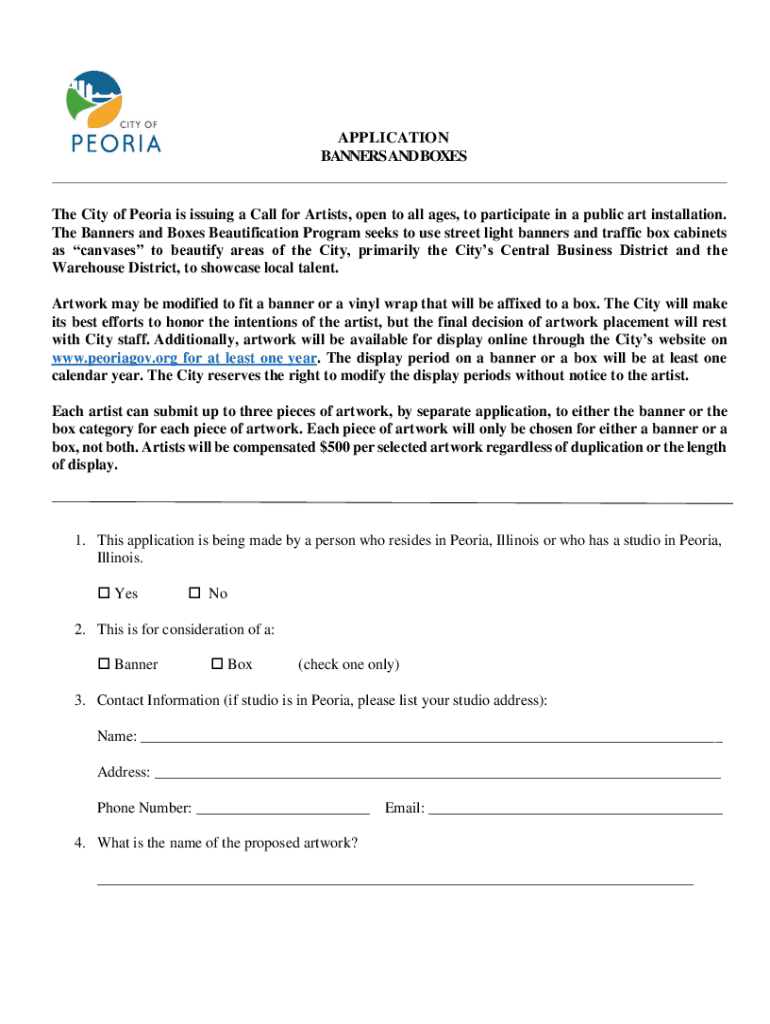Get the free APPLICATION BANNERS AND BOXES The City of Peoria is issuing ...