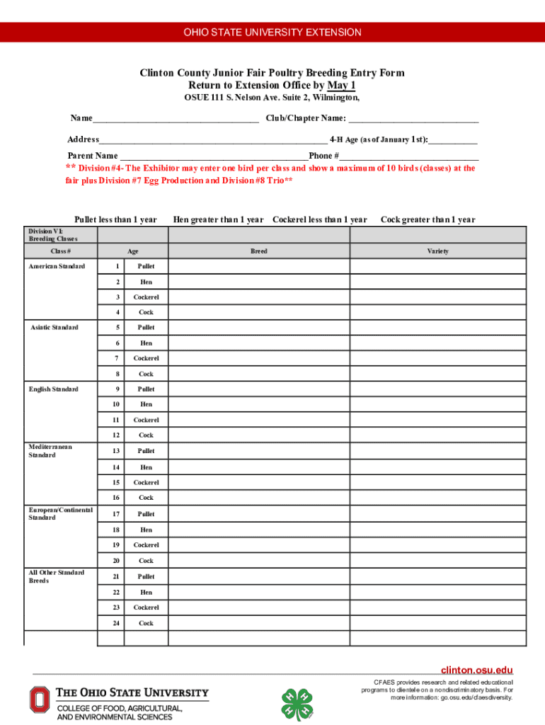 Get the free Clinton County Jr Fair Entry Forms Due June 1st - clinton osu