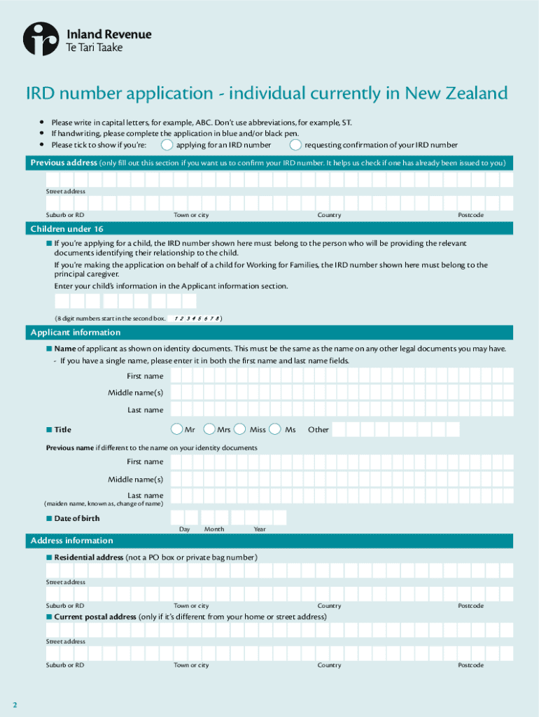 The IR595 form is the official document used in New Zealand for individuals and businesses applying for an IRD (Inland Revenue Department) number, which is essential for tax purposes. An IRD number serves as a unique identifier for taxpayers, enabling the Inland Revenue to track income and collect taxes efficiently. Obtaining an IRD number is crucial for anyone earning income in New Zealand, as it ensures compliance with tax regulations.