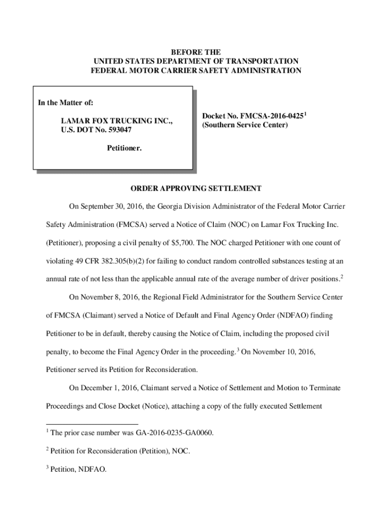 Get the free LAMAR FOX TRUCKING INC., U.S. DOT No. 593047 Petitioner ...