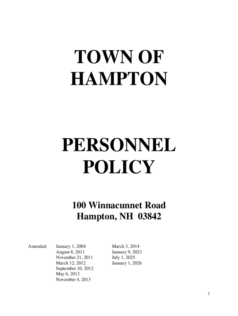 Get the free TOWN OF HAMPTON PERSONNEL POLICY