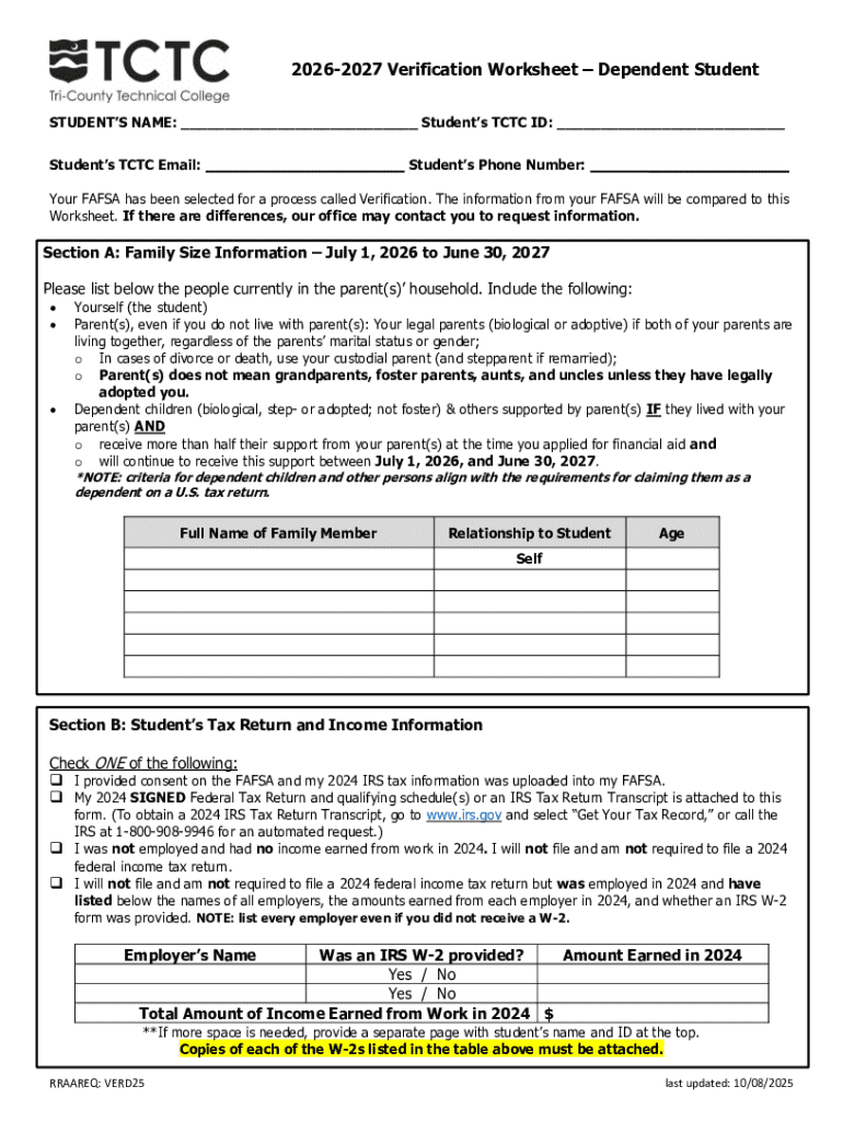 Step-by-step guide to filling out the 20262027 federal verification worksheet