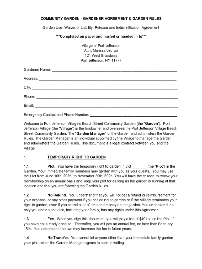 Get the free COMMUNITY GARDEN - GARDENER AGREEMENT & GARDEN ...