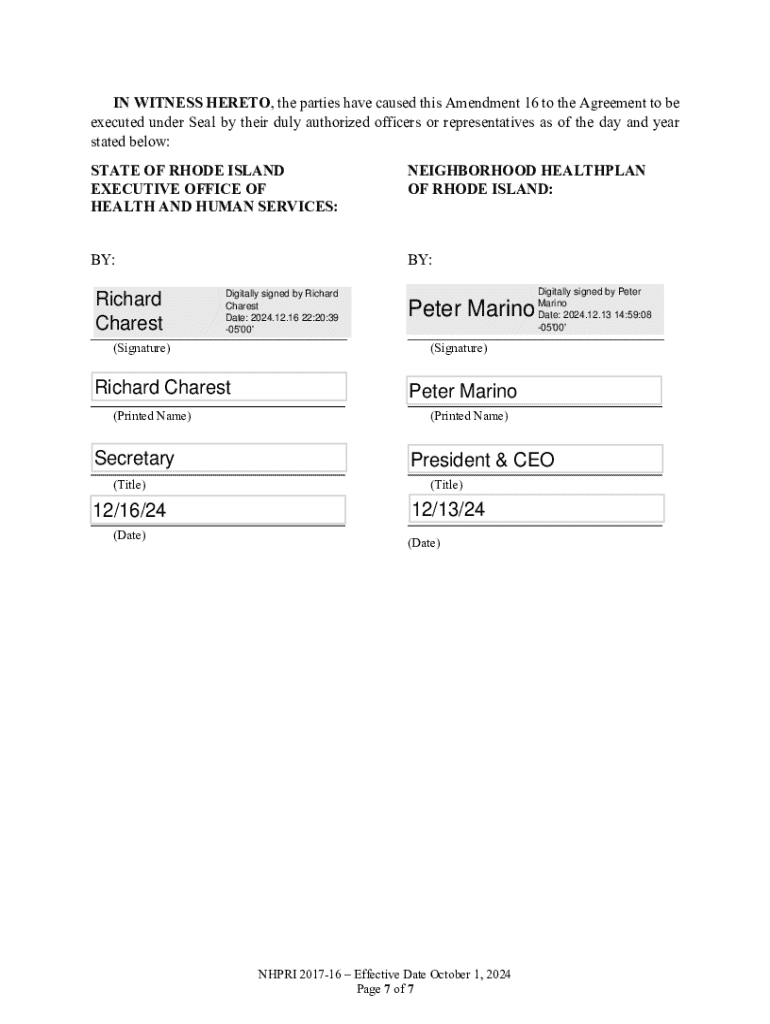 Get the free neighborhood health plan of rhode island amendment no. 16 - eohhs ri