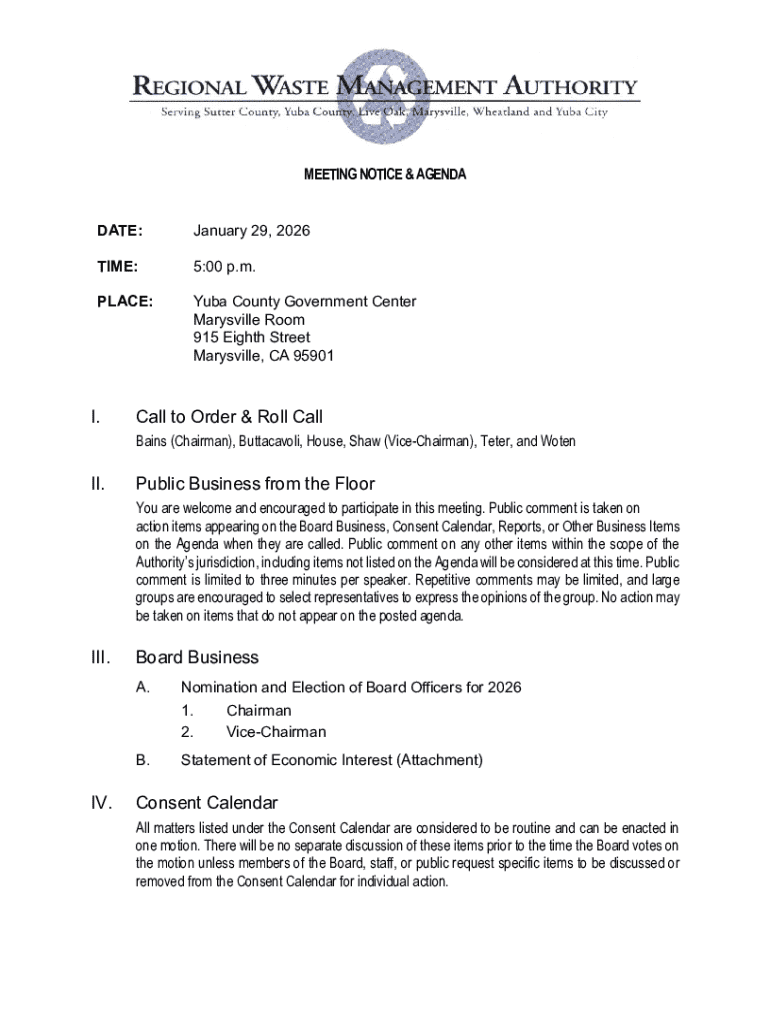 Get the free RWMA Board Agenda - Regional Waste Management Authority