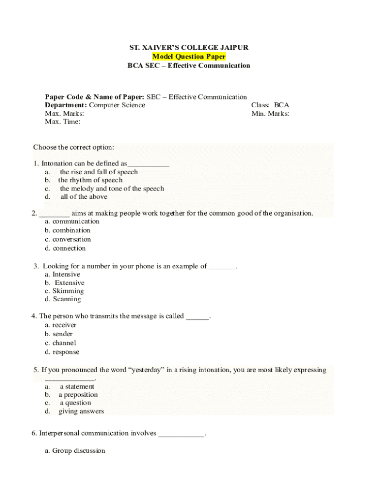 Get the free Effective Communication Paper Code & Name of ...