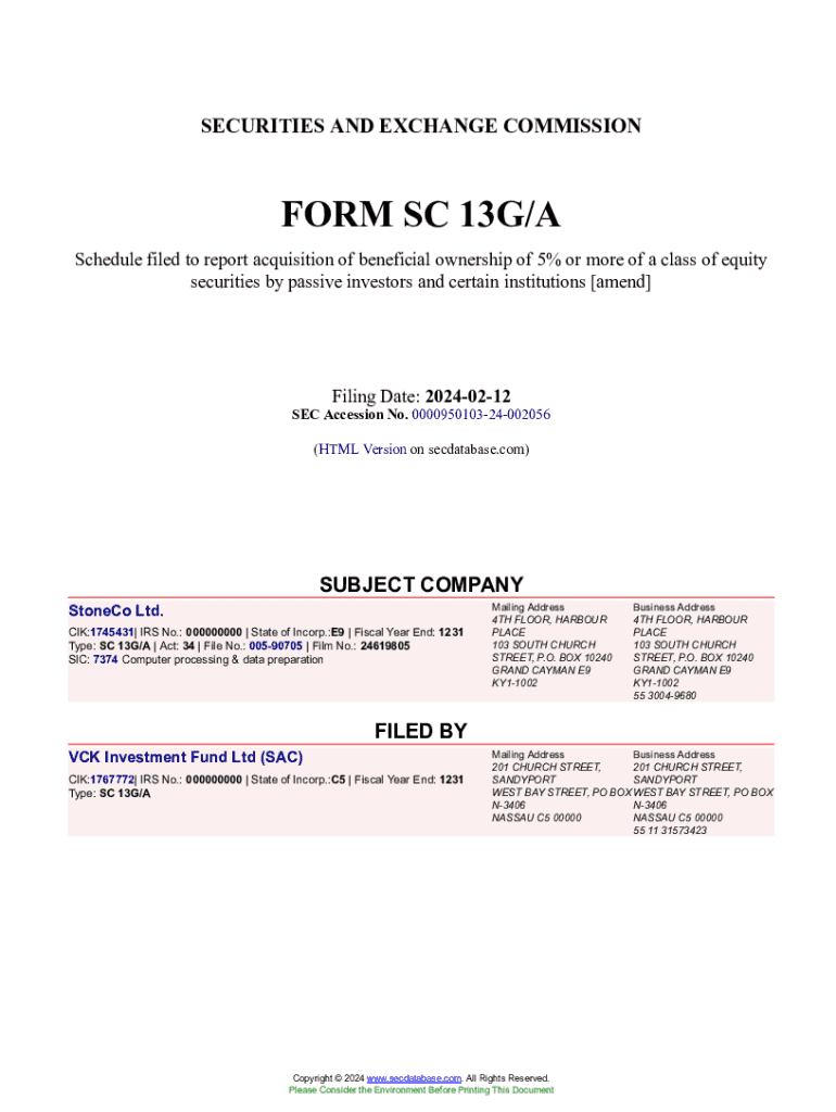 Form SC is a specialized document required for proper compliance by StoneCo Ltd, serving as a critical tool in the company's regulatory framework. It outlines necessary financial and operational disclosures, ensuring that stakeholders have access to crucial information regarding the organization’s health and performance.