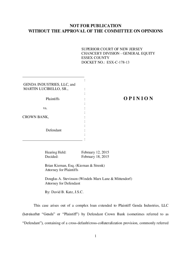 Get the free ESX-C-178-13 - Genda Industries LLC v. Crown Bank - NJ Courts