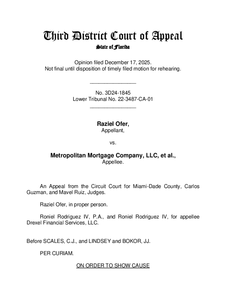 Third District Court of Appeal State of FloridaOpinion filed December 17, 2025. Not final until disposition of timely filed motion for rehearing. ___ No. 3D241845 Lower Tribunal No. 223487CA01 ___Raziel