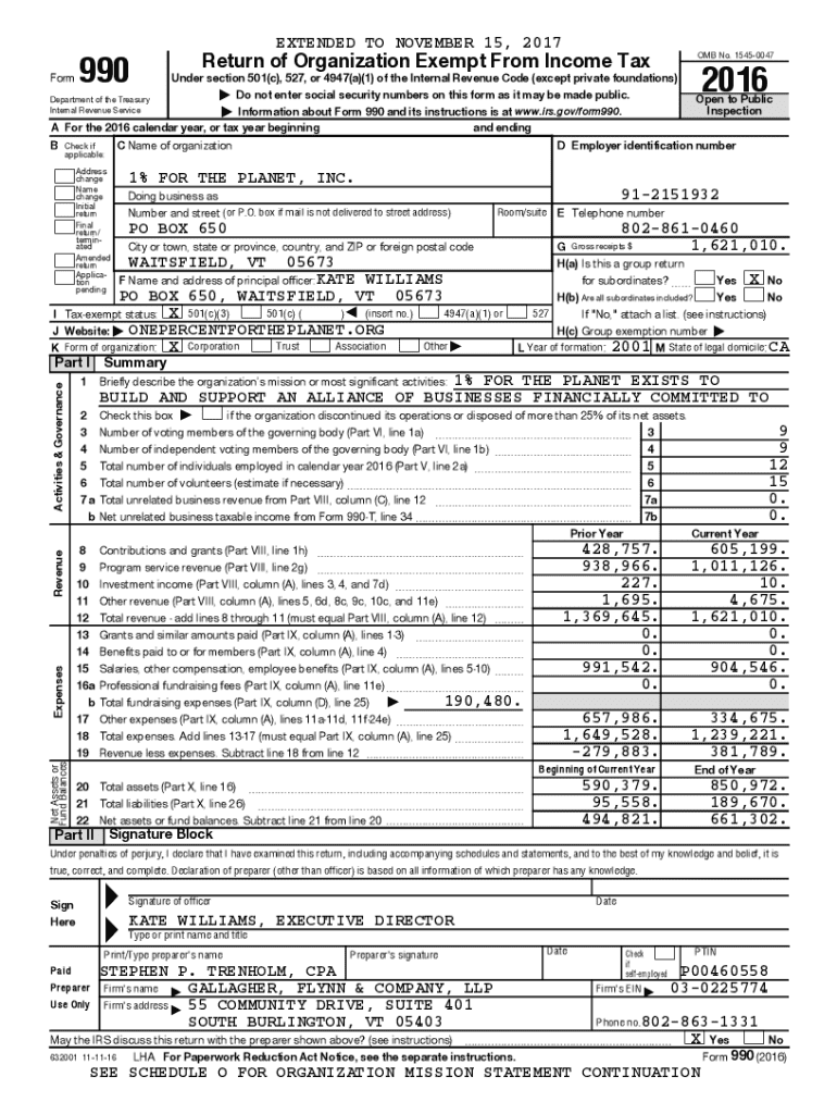 FormEXTENDED TO NOVEMBER 15, 2017990Return of Organization Exempt From Income TaxOMB No. 15450047Under section 501(c), 527, or 4947(a)(1) of the Internal Revenue Code (except private foundations)
