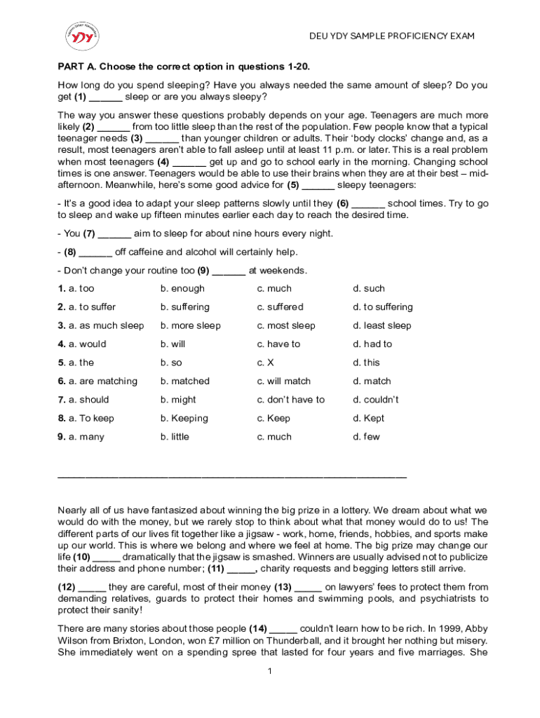 Get the free DEU YD DEU YDY SAMPLE PROFICIENCY EXAM 1 PART A ...