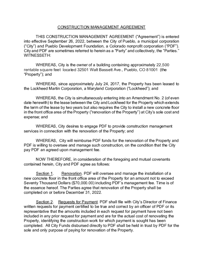 Get the free construction management agreement - Pueblo.us
