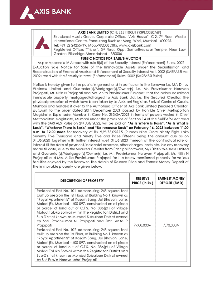 Get, Create, Make and Sign public notice for salee-auction