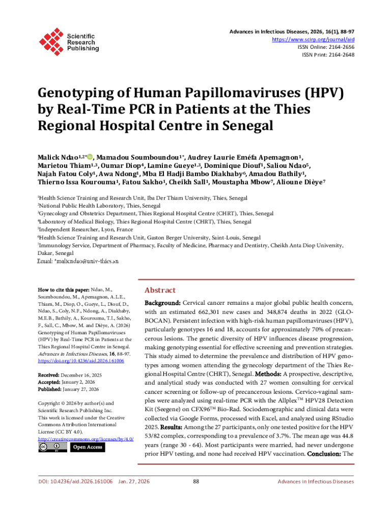 Get the free Genotyping of Human Papillomaviruses (HPV) by Real-Time PCR in Patients at the Thies...
