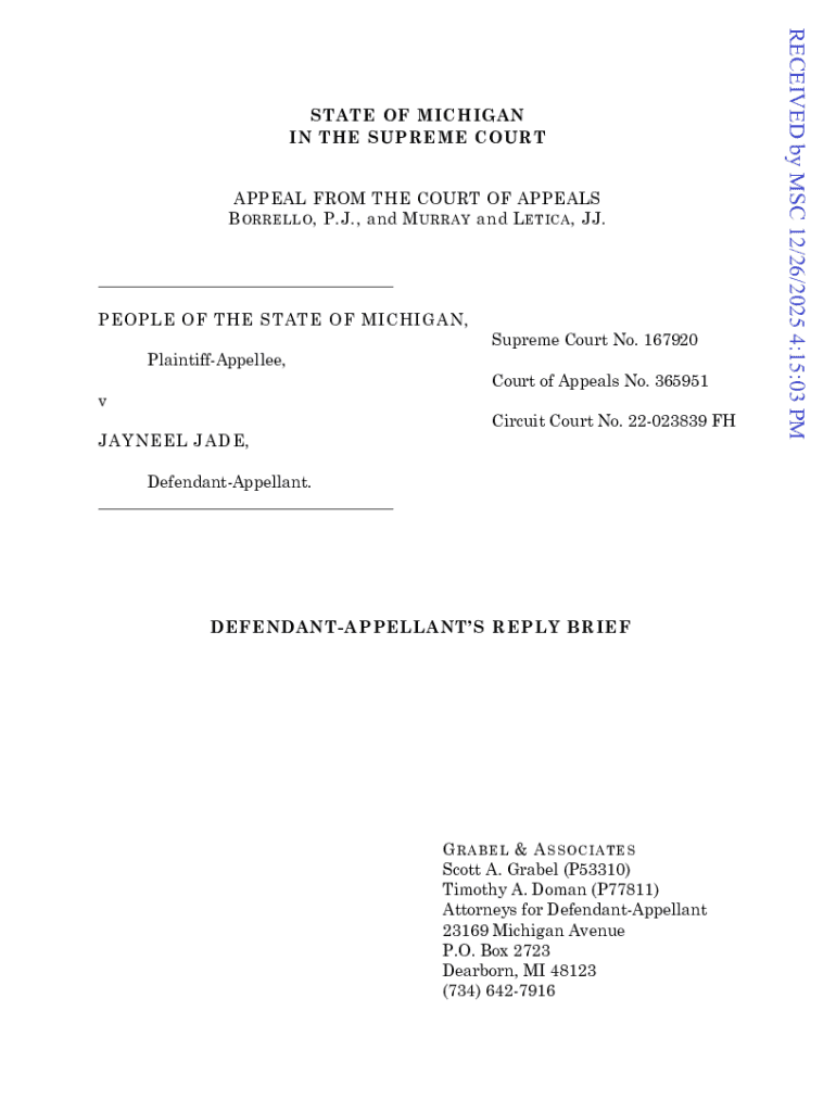 Get the free PEOPLE OF THE STATE OF MICHIGAN v. JAYNEEL ...