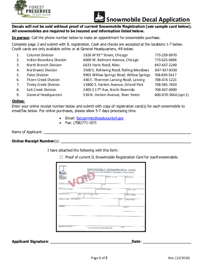Get the free Your Snowmobile's Registration Certificate and Decal
