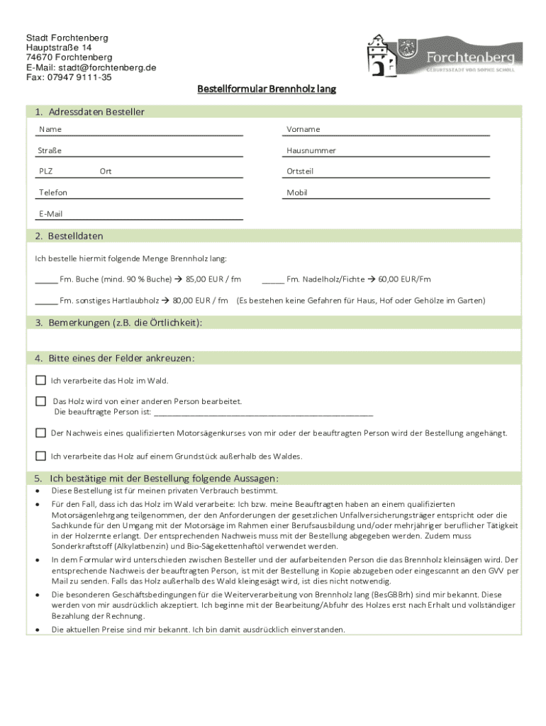 So füllen Sie brennholz-produkte in 74670 forchtenberg aus