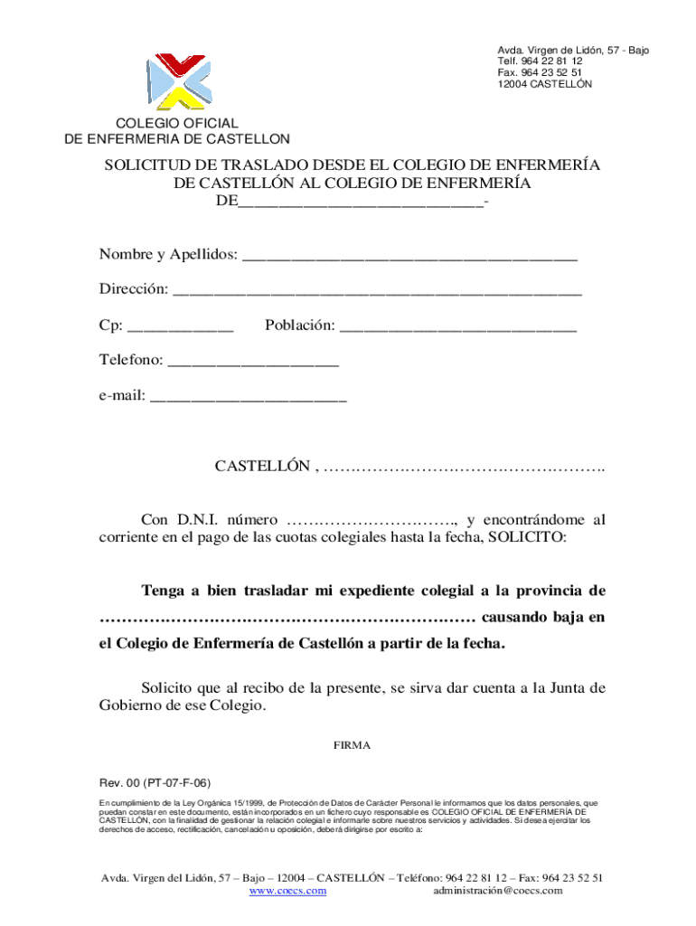 Obtener el gratis PT-07-F-06 SOLICITUD TRASLADO DESDE COECS A OTROS