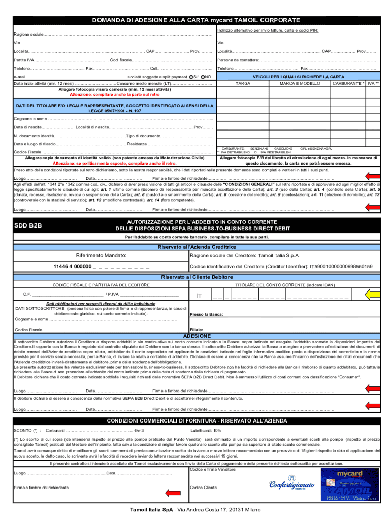 Ottieni il gratuito Domanda di adesione alla carta mycard Tamoil Corporate A