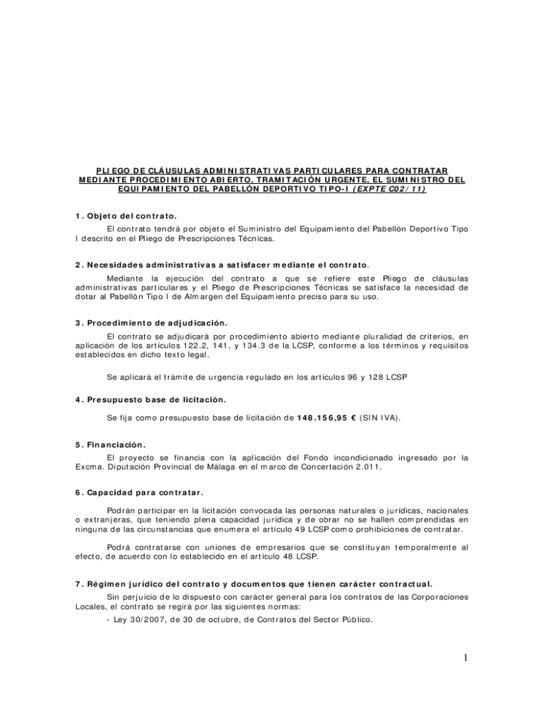 Obtener el gratis pliego de clusulas administrativas particulares que rige el