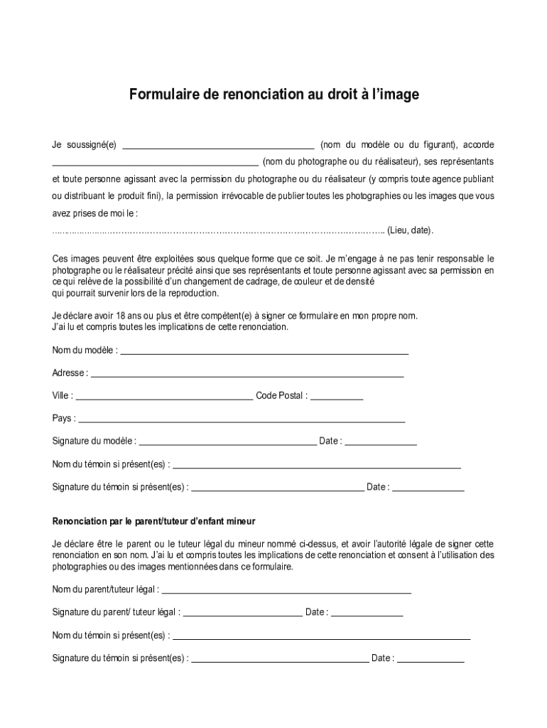 Obtenir le gratuit Formulaire de renonciation au droitl'image Concours photo
