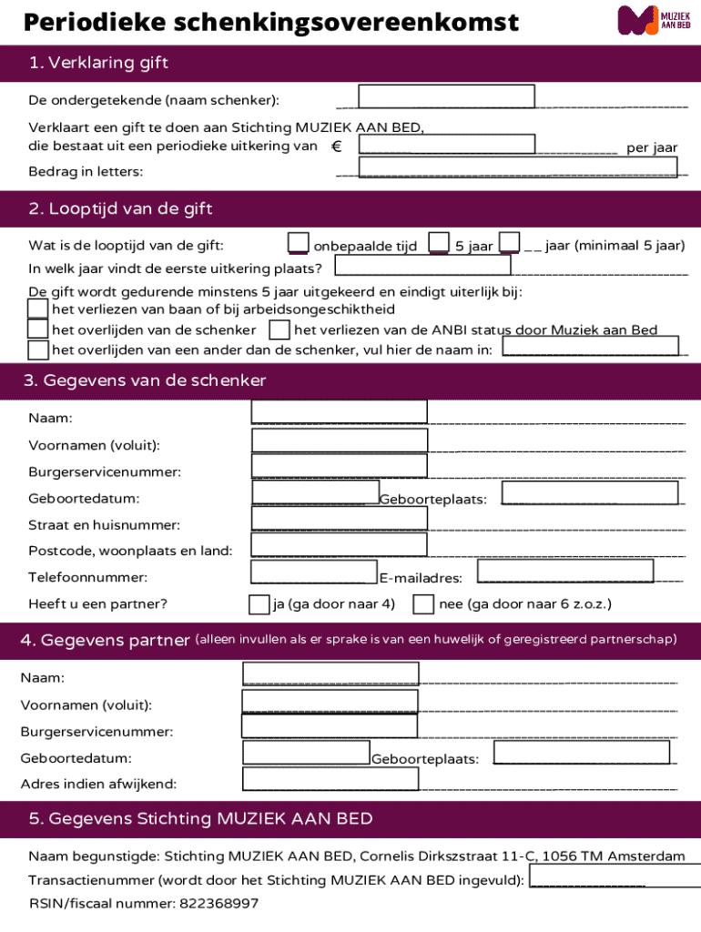 Wie heeft overeenkomst periodieke gift aan nodig?