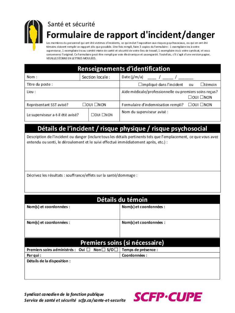 Obtenir le gratuit Registre d'accidents, d'incidents et de premiers secours