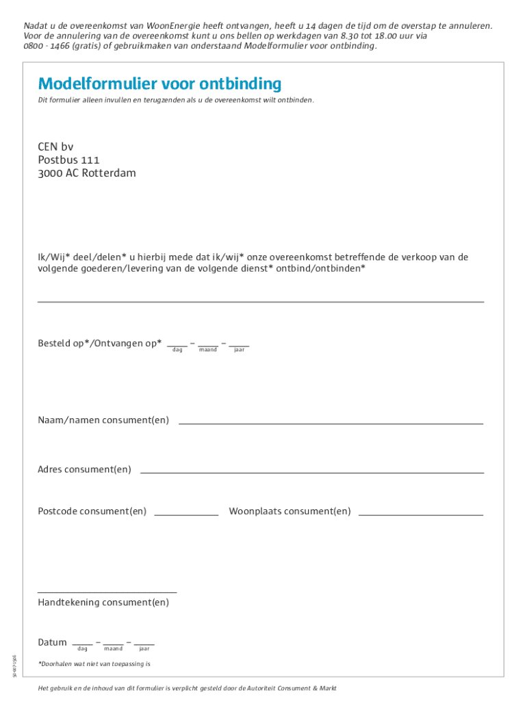 Hoe u annulering contract tot levering invult