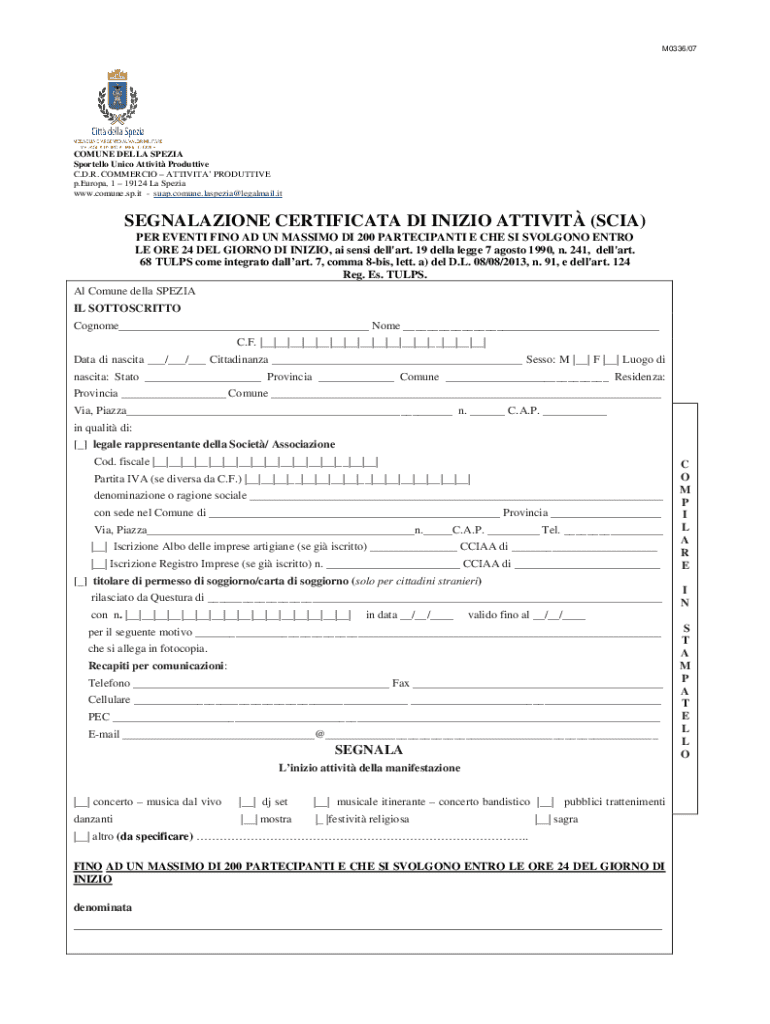 Ottieni il gratuito Carte dei Servizi - Sportello per le attivit produttive
