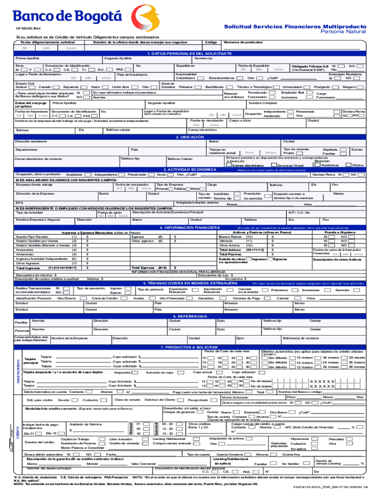 Obtener el gratis Solicitud de Servicios Financieros Multiproducto Persona ...