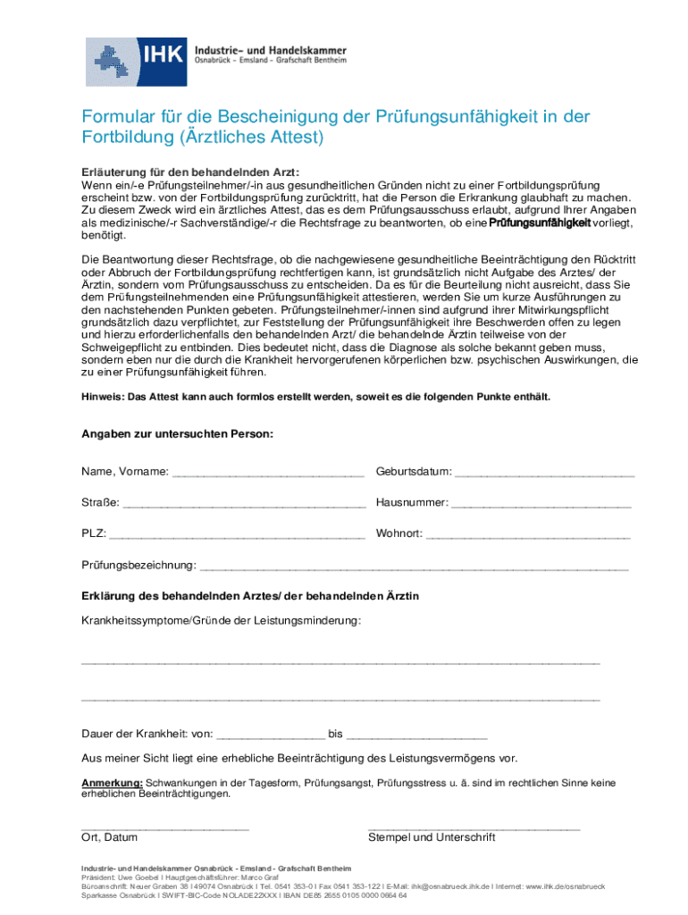 Holen Sie sich kostenlos Formular fr die Bescheinigung der Prfungsunfhigkeit in ...