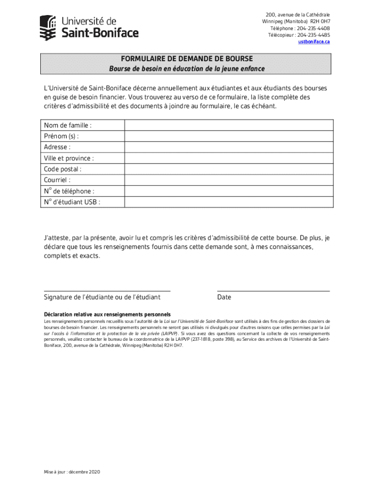 Obtenir le gratuit Bourse de besoin financier de l'Universit de Saint-Boniface