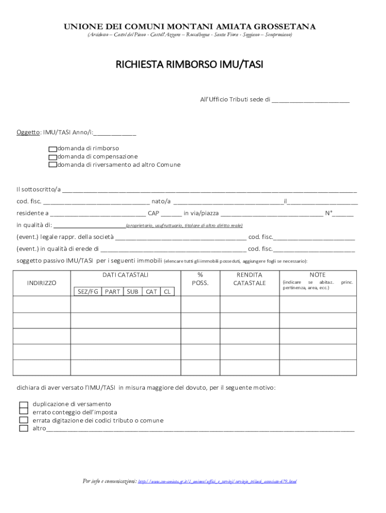 Ottieni il gratuito RICHIESTA DI RIMBORSO IMU E TASI
