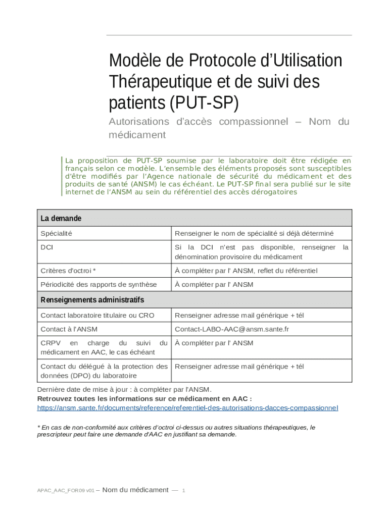 Frequently asked questions about the form Modle de PUT-SP AAC sans recueil de donnes