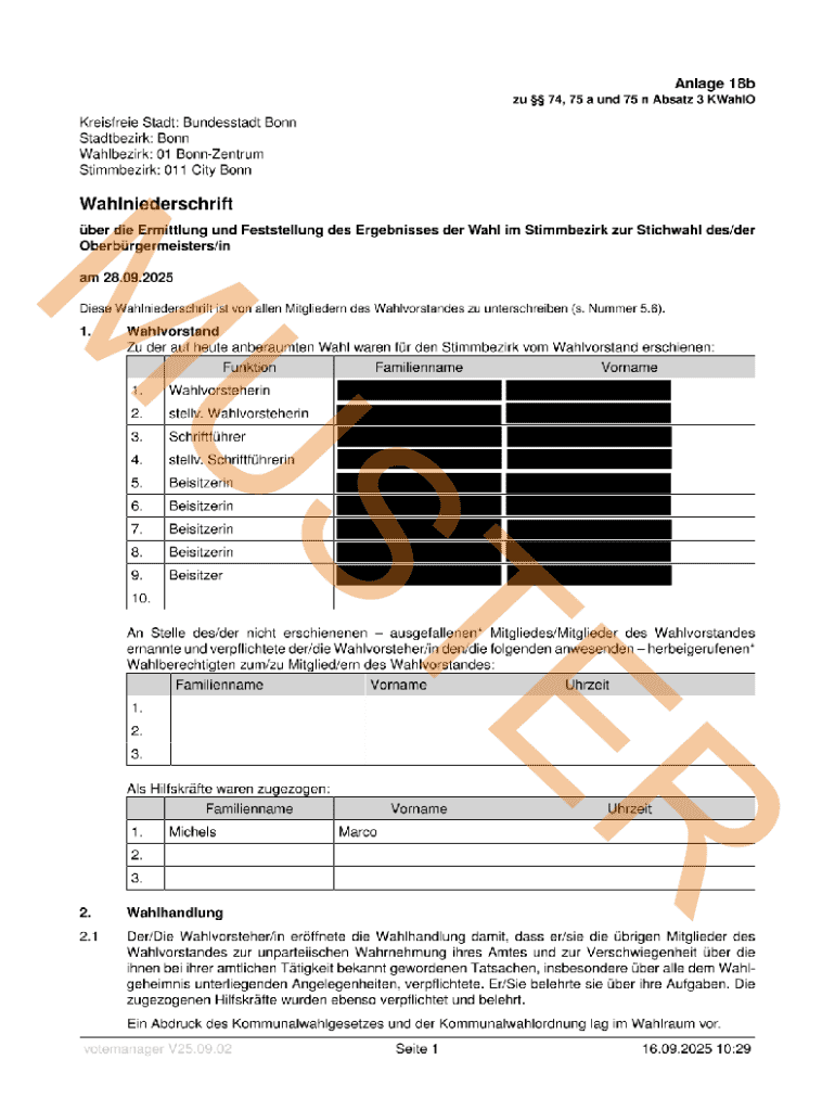 So füllen Sie diese wahlniederschrift ist auf aus
