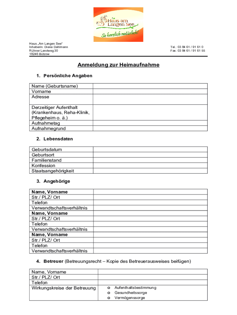 Wie fülle ich ein Pflegeheim in Bützow aus?