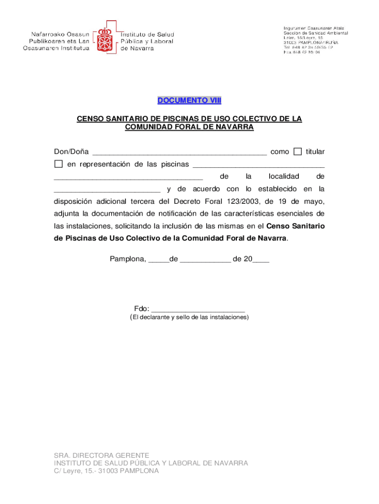 Obtener el gratis Autorizacin y control de piscinas de uso colectivo