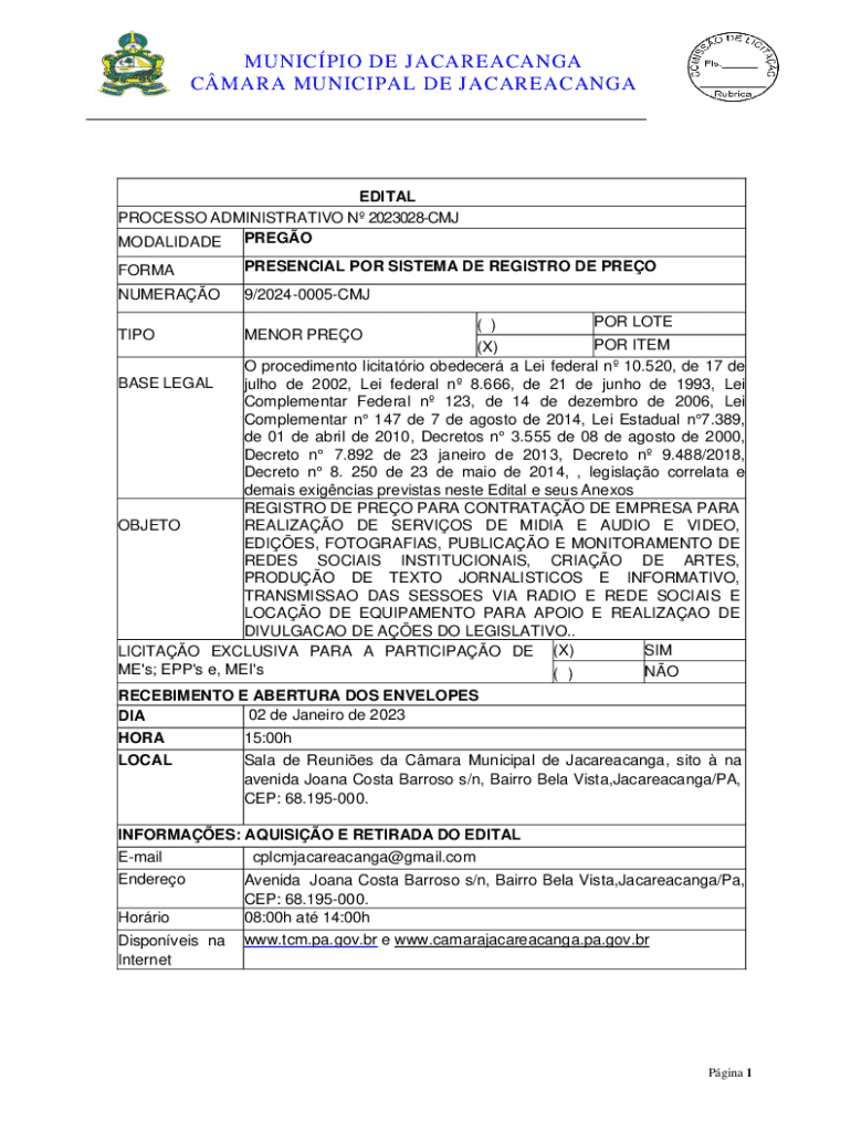 Obtenha o gratuito Licitaes do orgo CAMARA MUNICIPAL DE ...